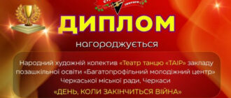Театр танцю «ТАІР» відзначився на Всеукраїнському фестивалі патріотичної творчості Народний художній колектив «Театр танцю «ТАІР» Багатопрофільного молодіжного центру здобув Першу премію у Всеукраїнському Новини Черкас