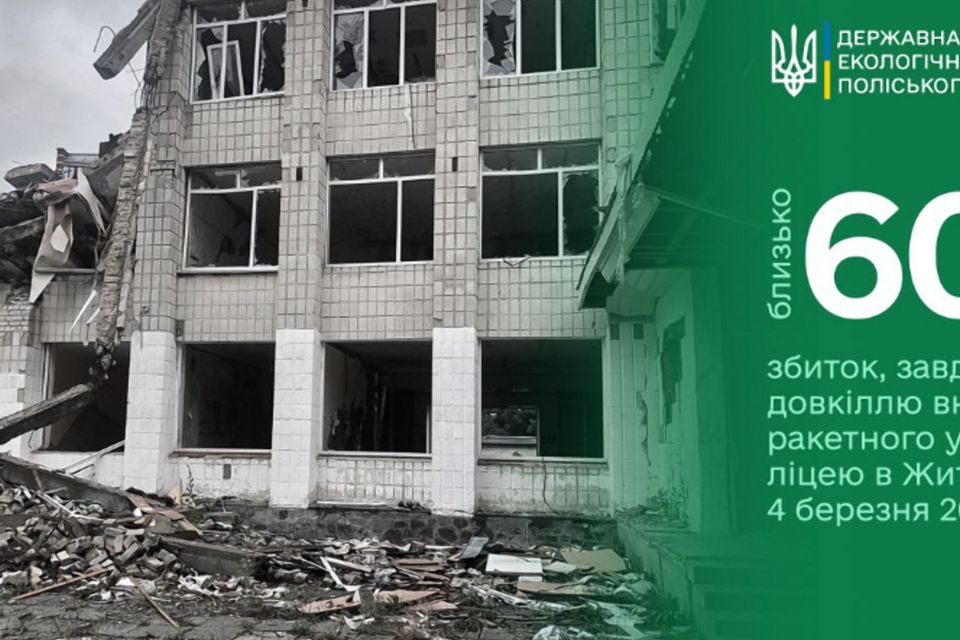 Матеріали з обрахованими збитками довкіллю унаслідок ракетного удару по приміщення ліцею № 25 у Житомирі, за словами Євгенія Медведовського, будуть передані до органів прокуратури для долучення до реєстру військових злочинів країни-агресорки і стягнення у майбутньому через міжнародні суди репарацій з росії”, – зазначили у Державній екологічній інспекції Поліського кругу.