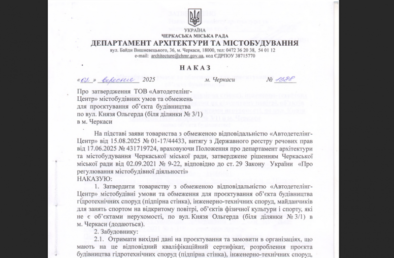 Нагадаємо, що міська влада Черкас оголосила аукціон на право оренди ділянки поряд.