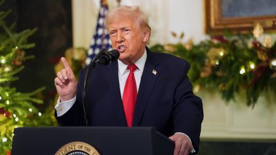 Президент Дональд Трамп виступає під час звернення до нації з Дипломатичної приймальні Білого дому у Вашингтоні, округ Колумбія, США, 17 грудня 2025 року. AP/The New York Times/Doug Mills