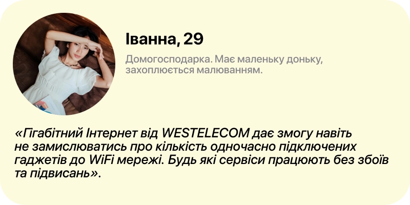 Вочевидь, що базової швидкості інтернету вже недостатньо для задоволення всіх актуальних потреб та обслуговування наявної кількості девайсів. На щастя, цю задачу можна вирішити, перейшовши на Гігабітний Інтернет Westelecom, за найвигіднішими умовами 79 грн/місяць, безстроково!