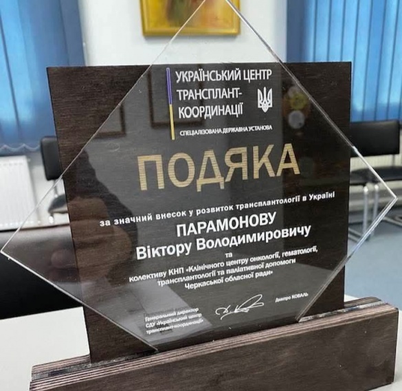 Директор Черкаського клінічного онкологічного центру Віктор Парамонов разом із колективом закладу отримали подяку Українського центру трансплант-координації за вагомий внесок у розвиток трансплантології в Україні.