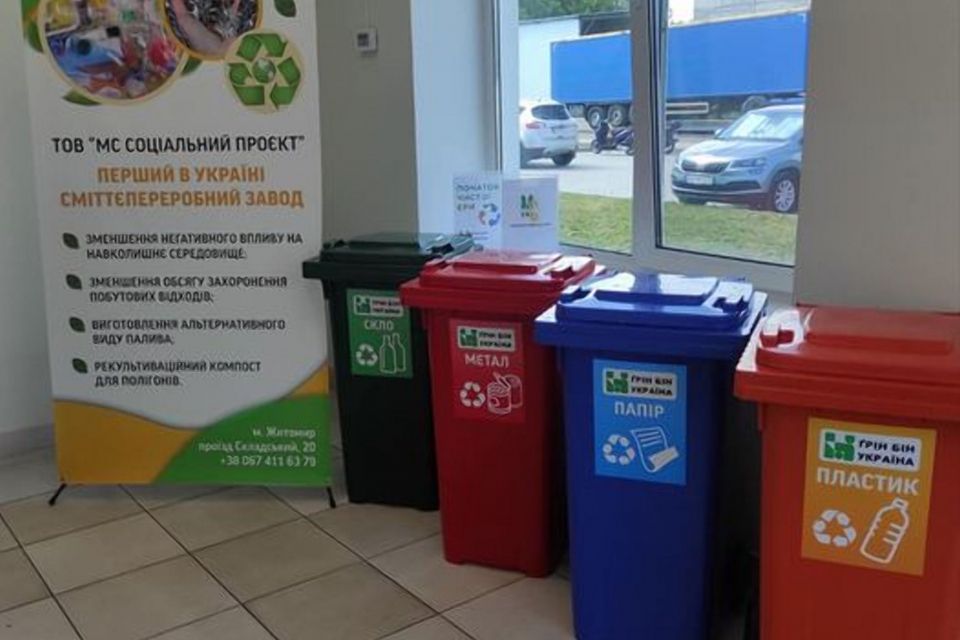 “З метою популяризації серед населення Житомира сортування відходів за фракціями, компанія «Ґрін Бін» разом з сміттєпереробним заводом «МС Соціальний Проєкт» розпочинає програму розміщення фірмових контейнерів, призначених для збирання відходів за відповідними фракціями.