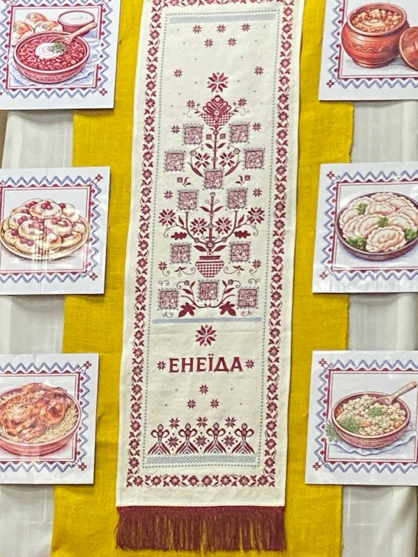 Центральним елементом проєкту є рушник «Гостина з «Енеїдою». На ньому поєднали 12 відеорецептів традиційних українських страв, які згадує класик у відомому творі.