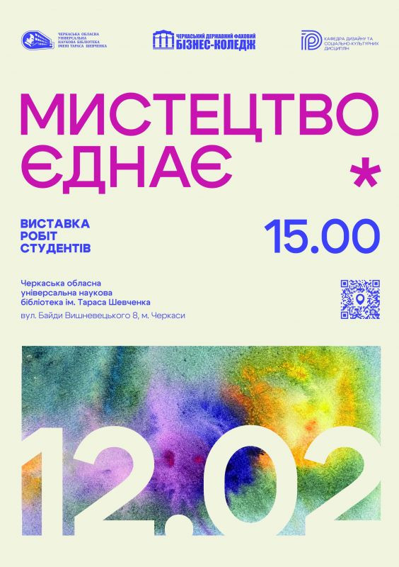 У самому серці Черкас, у стінах Черкаської обласної універсальної бібліотеки ім. Тараса Шевченка, 12 лютого стартує особлива творча подія — виставка «Мистецтво єднає».
