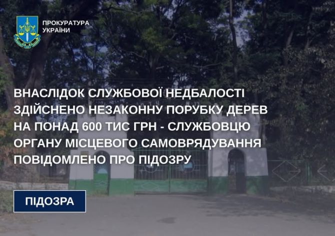 Унаслідок неналежного виконання службових обов’язків без відповідного дозволу було здійснено незаконну порубку 137 дерев, чим завдано шкоду природно-заповідному фонду на суму 622 тисячі гривень.
