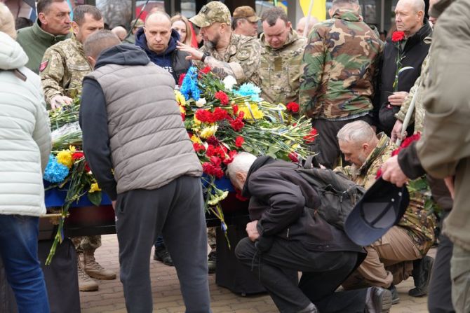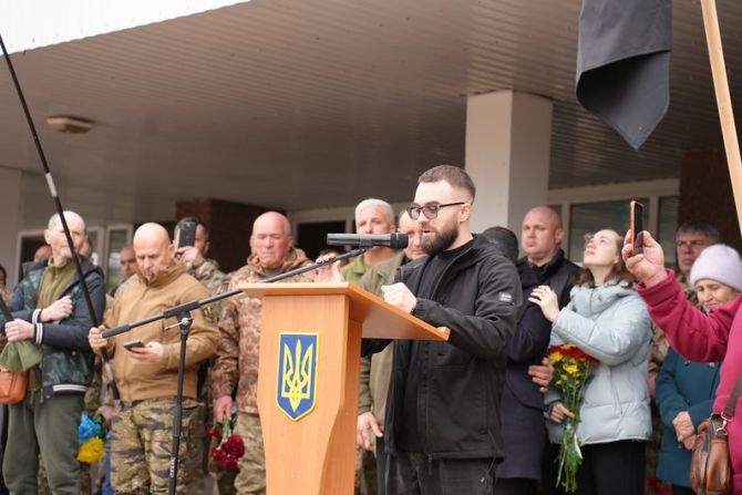 У Корсуні-Шевченківському попрощалися із ветераном Сергієм Русіновим, 28 березня 2026 року. Суспільне Черкаси/Анна Іщенко