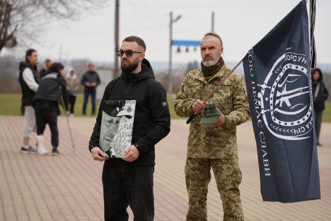 “Бойового шляху разом з Сергієм Русіновим у мене немає, але в нашій громаді є побратими, які разом з ним захищали честь та гідність нашої нації. Ми приїхали сюди всією нашою організацією підтримати та вшанувати пам’ять Сергія Русінова. Він справді виправдовує свій позивний — «Шаман». Це людина, яка була неймовірно правильна, старовір, людина, яка ментально розуміла всіх побратимів. Зараз душа нашої спільноти, наш ментальний командир на тому світі”.