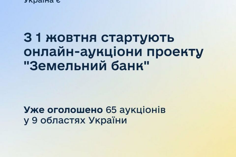 Із 1 жовтня стартують онлайн-аукціони проекту “Земельний банк”. Це дозволить прозоро орендувати державні землі.