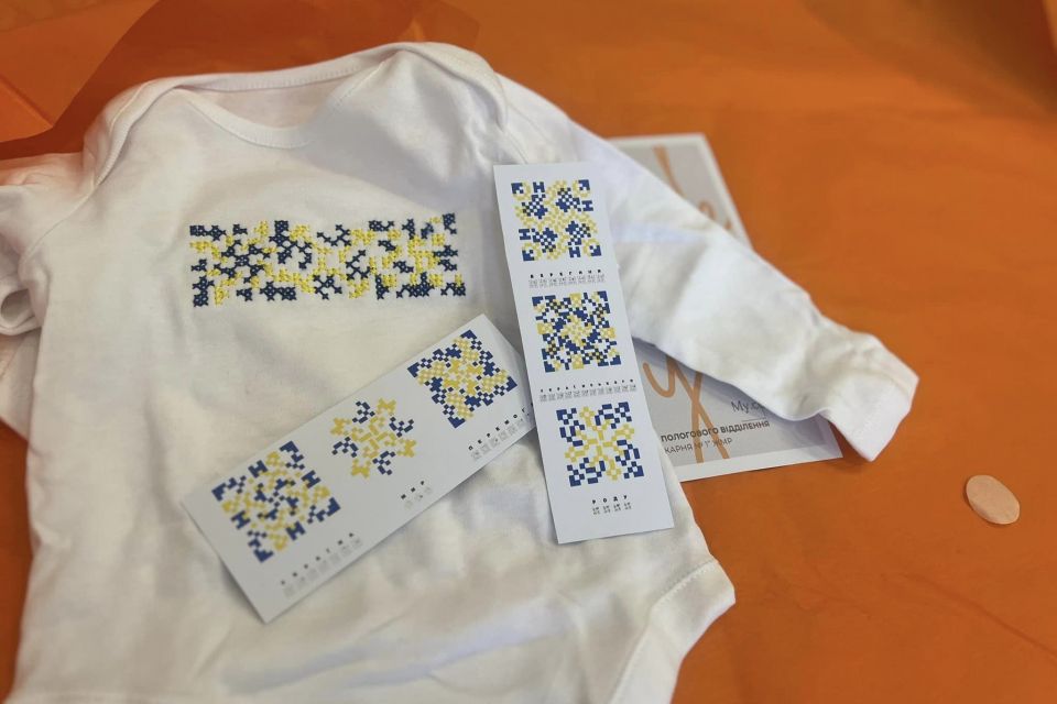 Про ініціативу лікарів пологового КП “Лікарня 1”, Житомир розповів у фейсбуці міський голова Сергій Сухомлин. Лікарки власноруч вишили закодовані слова «Україна. Мир. Перемога» та «Берегиня українського роду» для малечі та матусь.