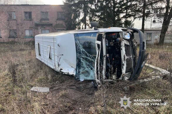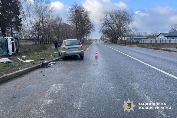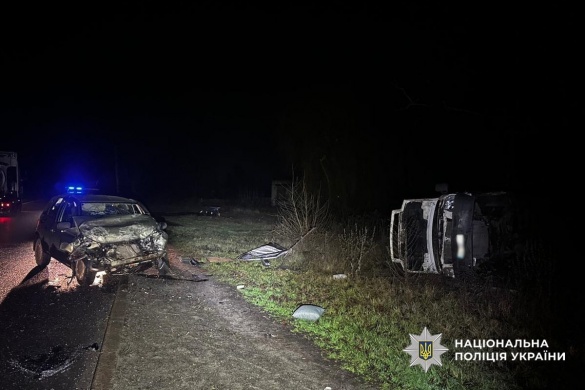 Водій авто "Volkswagen", виконуючи маневр обгону, виїхав на смугу зустрічного руху та зіткнувся з автівкою "ВАЗ". Внаслідок зіткнення "Volkswagen" перекинувся. Обидва водії отримали тілесні ушкодження та були госпіталізовані до лікарні.