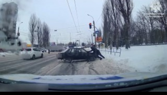 Щоб не створювати перешкод для інших учасників дорожнього руху, патрульні допомогли виштовхати авто зі снігу. Після цього керманич зміг продовжити рух.