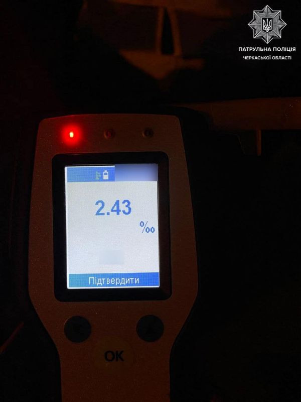 Спілкуючись із 20-річним громадянином, патрульні виявили в останнього ознаки алкогольного сп’яніння та запропонували йому пройти огляд на стан сп’яніння за допомогою приладу Драгер, на що керманич погодився. Результат — 2,43 проміле. Також поліцейські встановили, що останній вже позбавлений права керування транспортними засобами строком на 5 років.