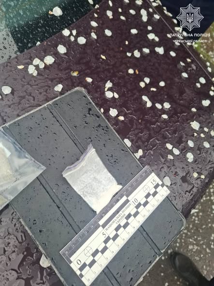 Під час спілкування з чоловіком та оформлення адміністративних матеріалів, поліцейські помітили, що він помітно нервував і намагався уникнути спілкування. Провівши поверхневу перевірку, у рюкзаку 50-річного водія, патрульні виявили зіп-пакет з порошкоподібною речовиною, а також два зіп-пакети із зеленою речовиною рослинного походження, ймовірно, наркотичною.