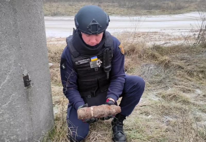 Під час гуманітарного розмінування поблизу Ірпеня сапери виявили артилерійський снаряд часів Другої світової війни. Боєприпас перебував у ґрунті та становив потенційну небезпеку.