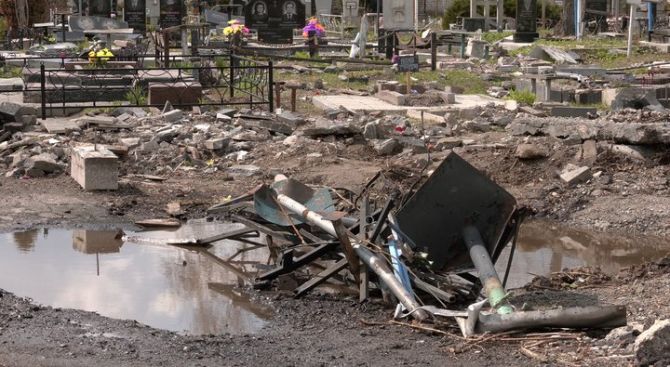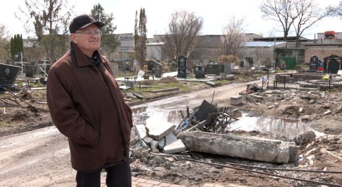 “У когось упала оградка, у когось похилився хрест. Це дуже просто ремонтується. У моєму випадку або в сусідньому випадку — тут пряме влучення, все змішано з землею, залізом і залізобетоном.”