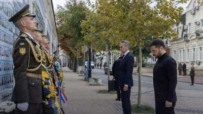 Зазначається, що глава держави разом зі Схоофом вшанували памʼять загиблих українських захисників і захисниць.