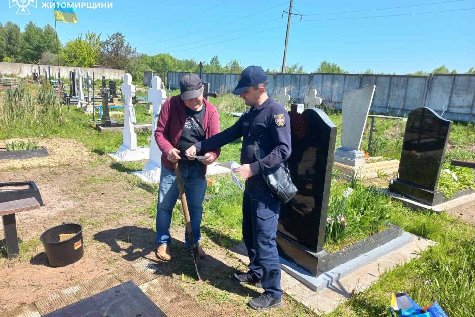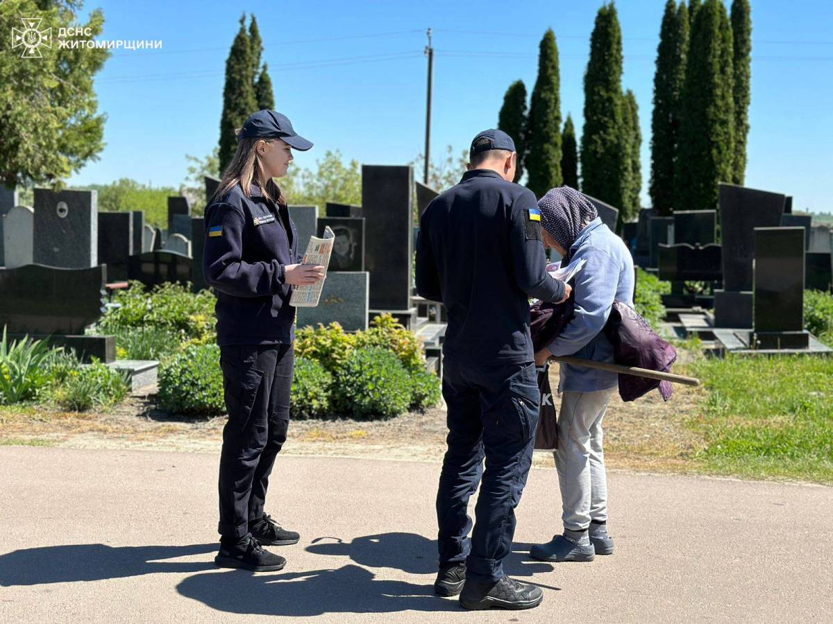 Зважаючи на масові відвідування населенням кладовищ цими днями, рятувальники проводять превентивну роботу. Зокрема, сьогодні фахівці Служби порятунку провели інформаційну роботу у м. Звягель.