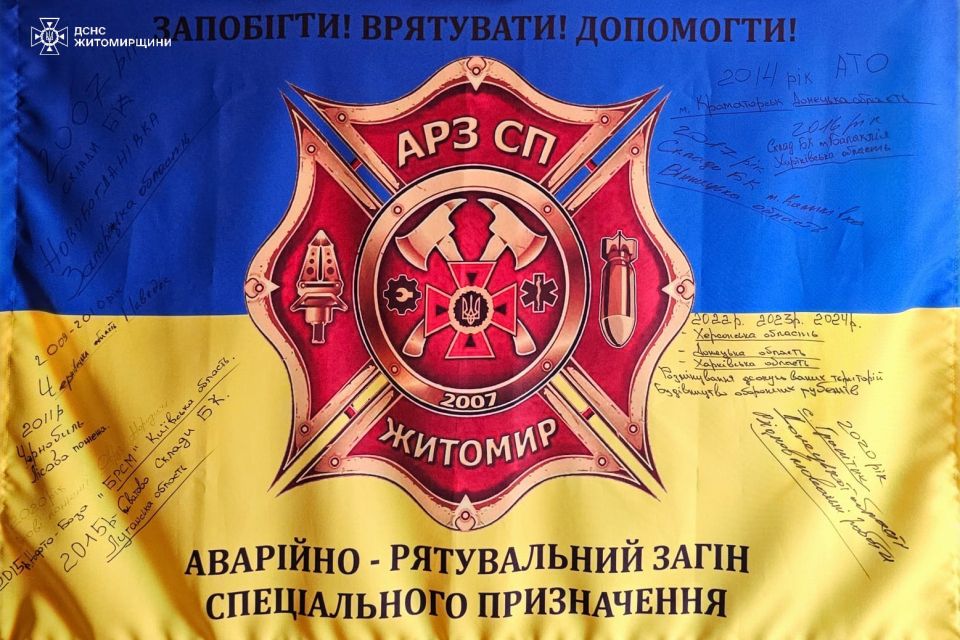 Бійці аварійно-рятувального загону спеціального призначення ГУ ДСНС в області долучилися до участі у виставці Прапорів вільної держави, що присвячена Дню Незалежності України та наразі проходить у Житомирському муніципальному артпросторі «ВЕЖА».