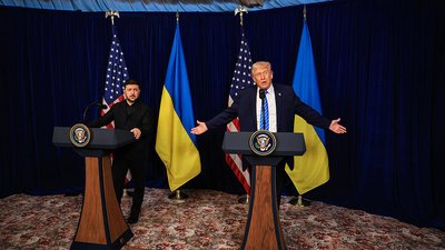 28 грудня Володимир Зеленський прибув до США на зустріч із Дональдом Трампом. Це відбулося після низки зустрічей на нижчому рівні. Вона проходить у головній обідній залі Мар-а-Лаго. Однією з головних тем розмови будуть гарантії безпеки та їхні терміни у межах потенційної мирної угоди. Крім цього, на порядку денному стоїть економічна допомога для відновлення України та питання Запорізької АЕС.