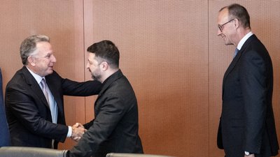 Спецпредставник США Стів Віткофф вітається з президентом України Володимиром Зеленським. Getty Images/Bundesregierung/Guido Bergmann