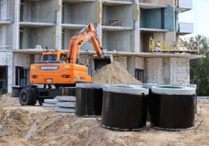 - у будинку 3 завершено заливку плити перекриття 9-го поверху, монтуються армовані конструкції для підняття поверховості та заливання наступних плит перекриття;здійснюємо підготовчі роботи з благоустрою території комплексу.