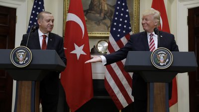 Президент США Дональд Трамп простягає руку президенту Туреччини Реджепу Таїпу Ердогану в Білому домі у Вашингтоні, 16 травня 2017 року. AP/Evan Vucci