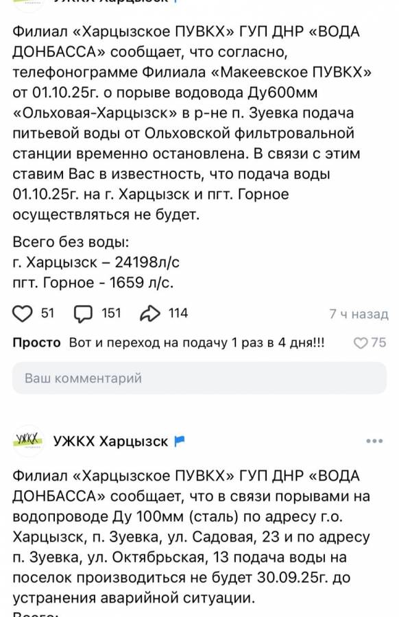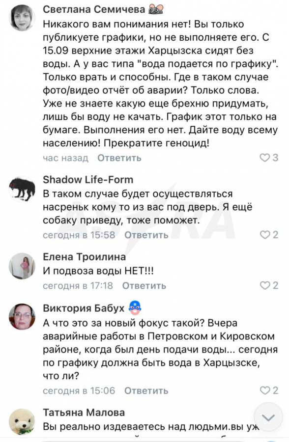 “С 15 сентября верхние этажи без воды, а вы пишете, что подача идет по графику“, — возмущаются горожане в соцсетях.