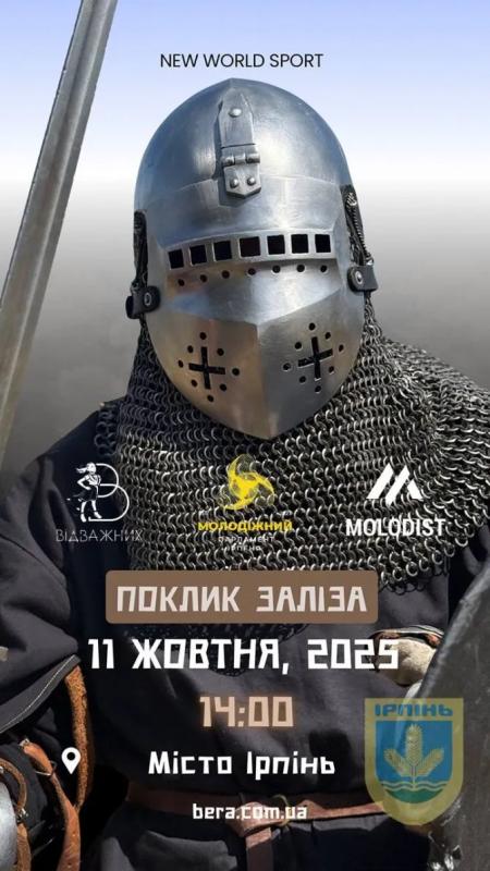 11 жовтня, у рамках Дня міста, відбудеться відкритий лицарський турнір «Поклик заліза», який об’єднає любителів історії, спорту та видовищних змагань. Про це повідомили у Молодіжному парламенті Ірпеня.