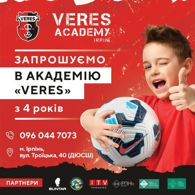 Запрошуємо батьків Ірпеня та навколишніх громад долучити своїх дітей до футбольної родини Veres Academy — разом виховуємо нове покоління чемпіонів!