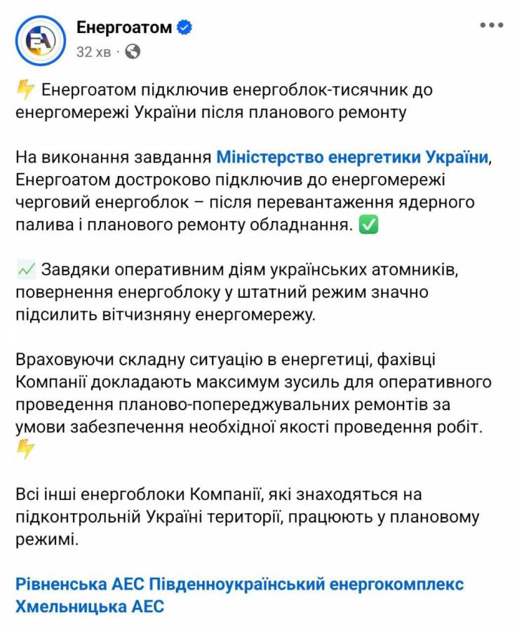 До початку повномасштабного вторгнення в Україні працювало 15 атомних енергоблоків, з яких зараз на підконтрольній Україні території 9 блоків (6 блоків розташовані на окупованій росіянами ЗАЕС).