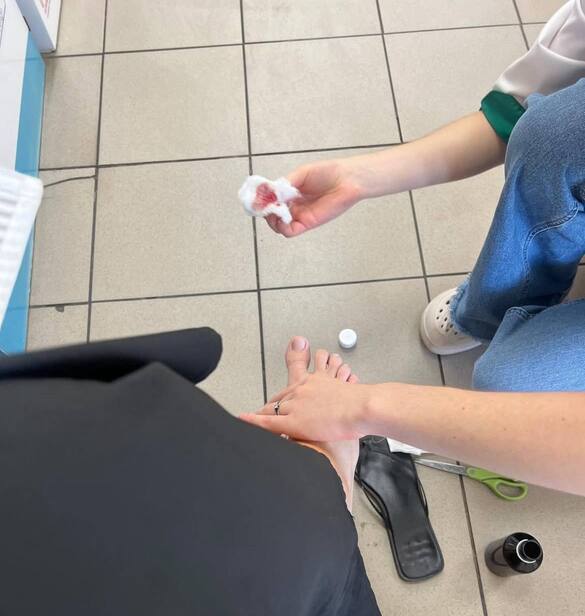 Згідно з дописом, потерпілій причинили дверима ногу.
