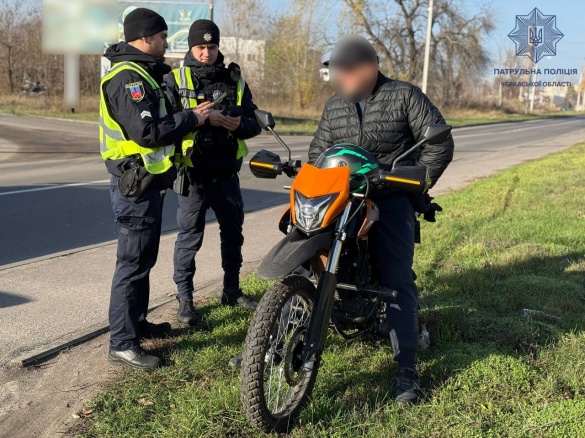 Днями у Черкасах поліцейські виявили водія мотоцикла, який ігнорував правила дорожнього руху та рухався тротуаром.