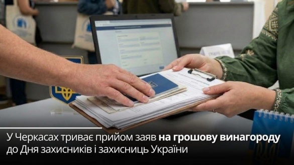 У Черкасах розпочали прийом заяв на отримання грошової винагороди до Дня захисників і захисниць України.