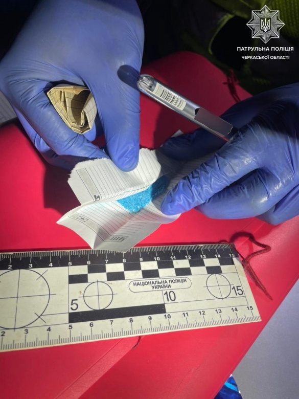 На місце події інспектори викликали слідчо-оперативну групу. Виявлені речовини вилучили та направили на експертизу. На водія автомобіля BMW патрульні винесли постанову за ч. 1 ст. 121-3 (Керування або експлуатація транспортного засобу без номерного знаку) КУпАП.