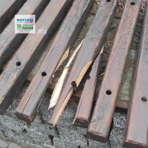 У черкаському парку «Сосновий бір» невідомі пошкодили чергову лавочку.