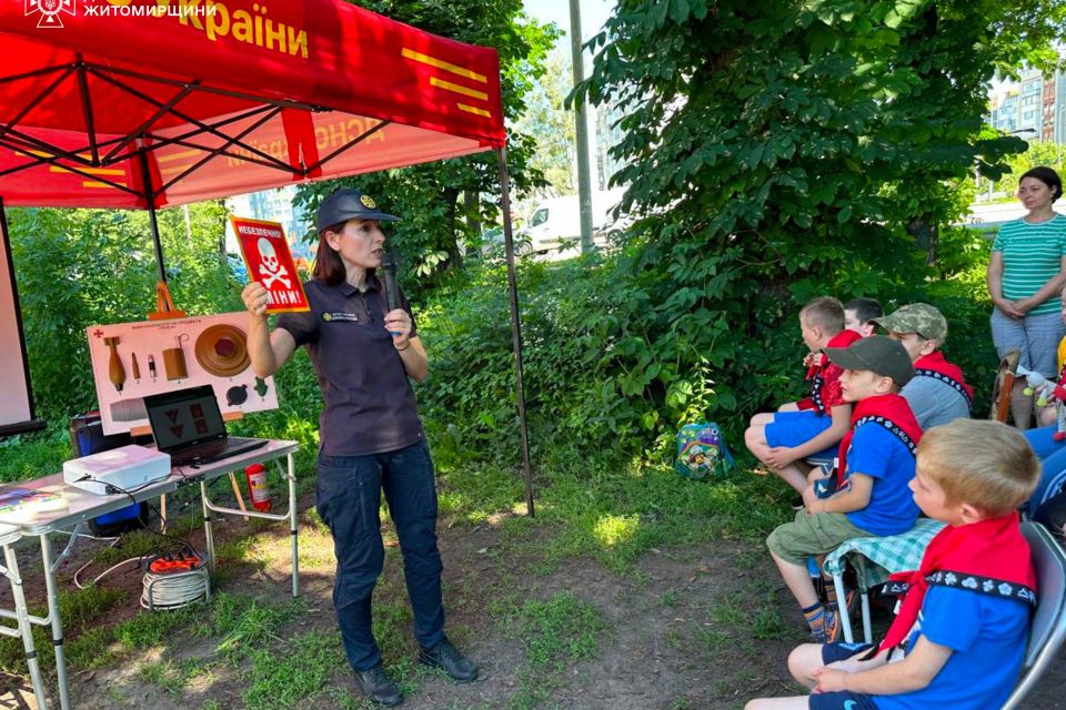 Під час заходу рятувальники, користуючись наявними плакатами та 3D-стендами, показали який вигляд мають сучасні боєприпаси та пояснили основний порядок дій під час виявлення вибухонебезпечних предметів. Також вони розповіли дітям про небезпеку відвідування лісів, полей, блокпостів, бліндажів, зруйнованих будинків та техніки на деокупованих територіях.