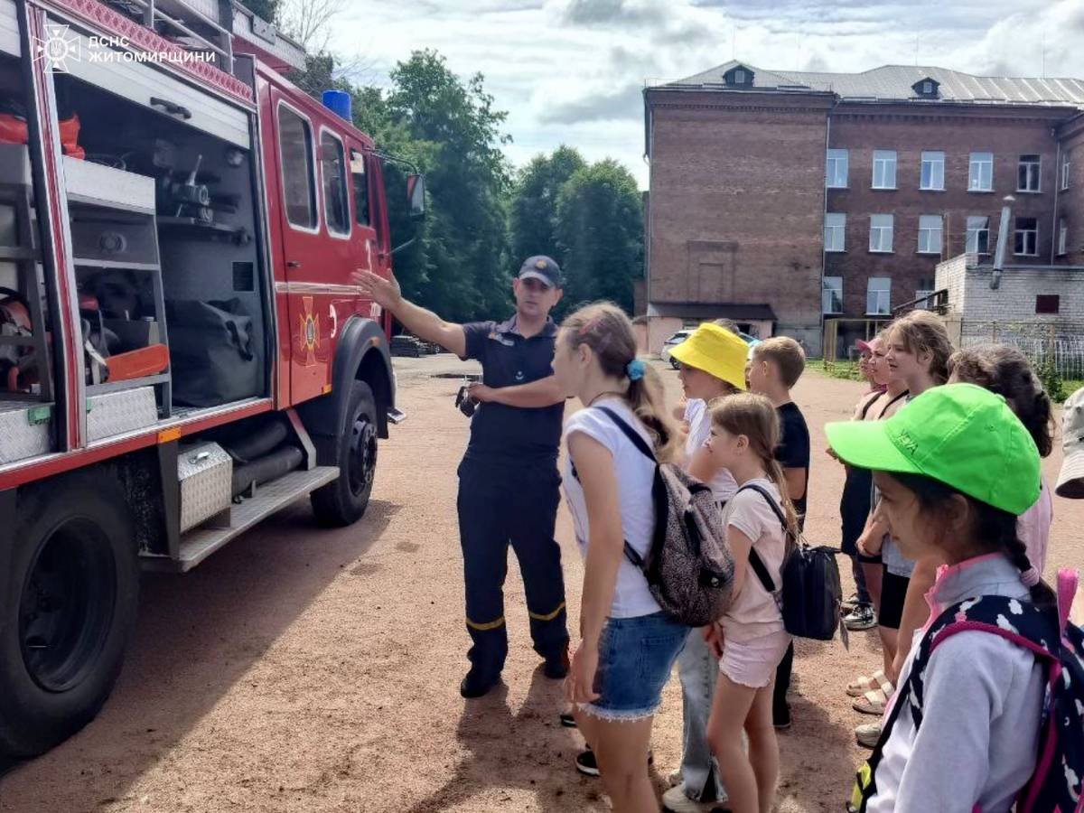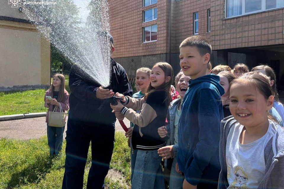 Крім цього, сьогодні в Класі безпеки, що на базі пожежно-рятувального підрозділу, дошкільнята Житомирського садочка № 35 разом із фахівчинею ДСНС навчалися як влітку не потрапити у небезпеку. Аналогічні заходи пройшли сьогодні у Звягелі для учнів гімназії №6 та ліцею № 4.