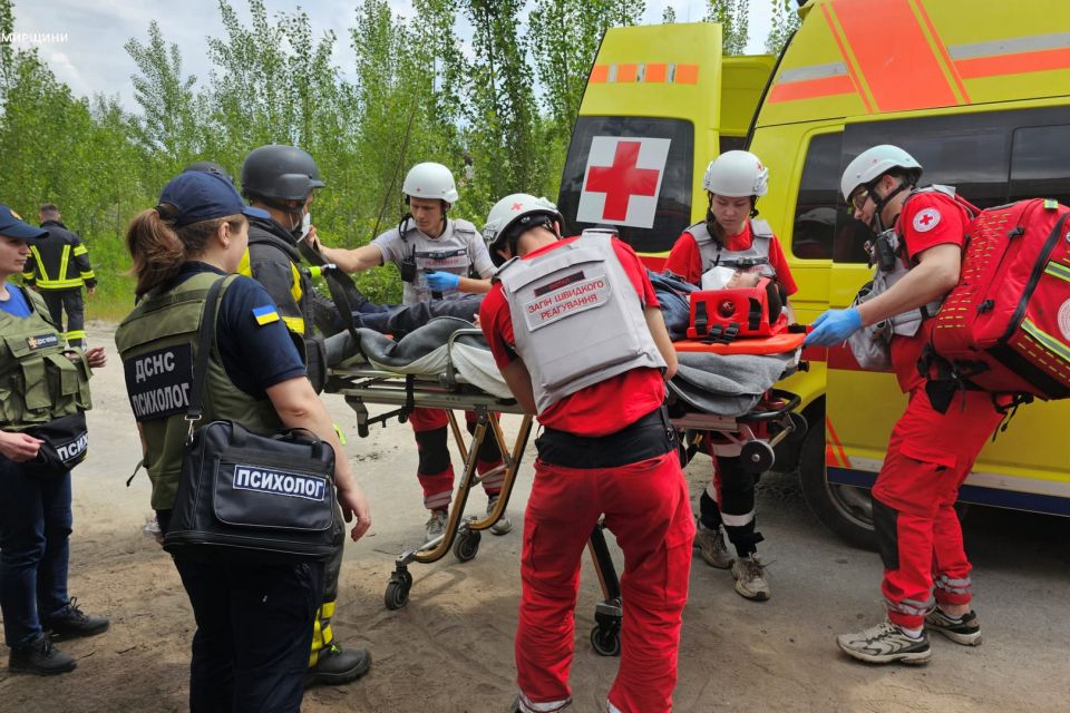 23 травня рятувальники Житомира спільно із Загоном швидкого реагування Червоного Хреста України та представниками медицини катастроф проходили теоретичний та практичний вишкіл, відпрацьовуючи в умовах навчань дії з пошуку і порятунку людей з-під завалів багатоповерхівки, спричинених влучанням ракети.