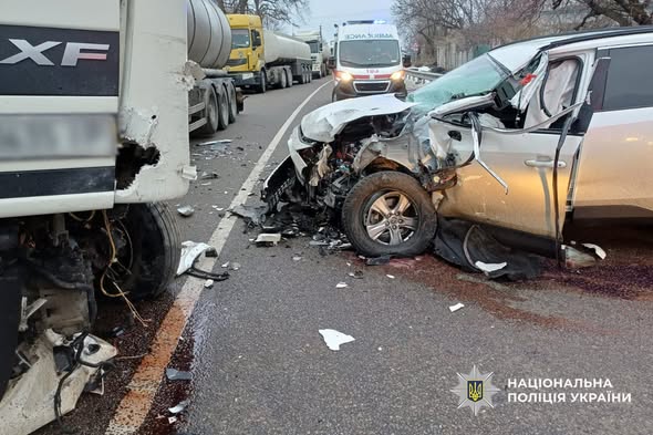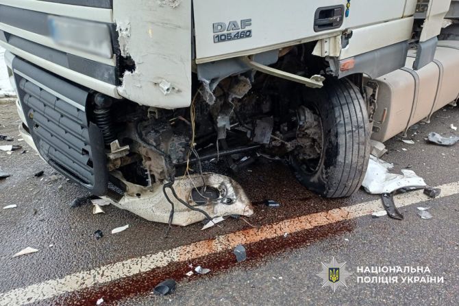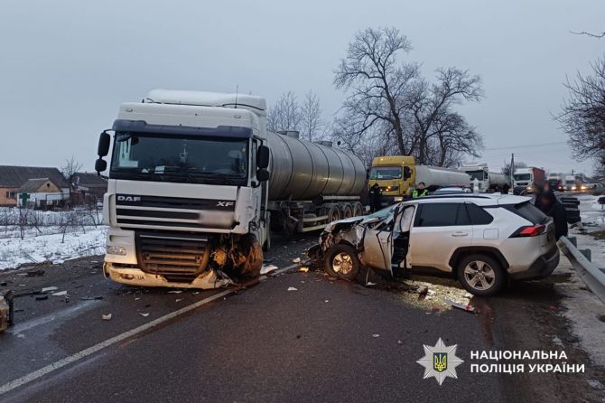34-річний водій автомобіля «Toyota RAV4» не обрав безпечної швидкості руху, виїхав на зустрічну смугу та допустив зіткнення з вантажівкою «DAF XF» під керуванням 61-річного водія.