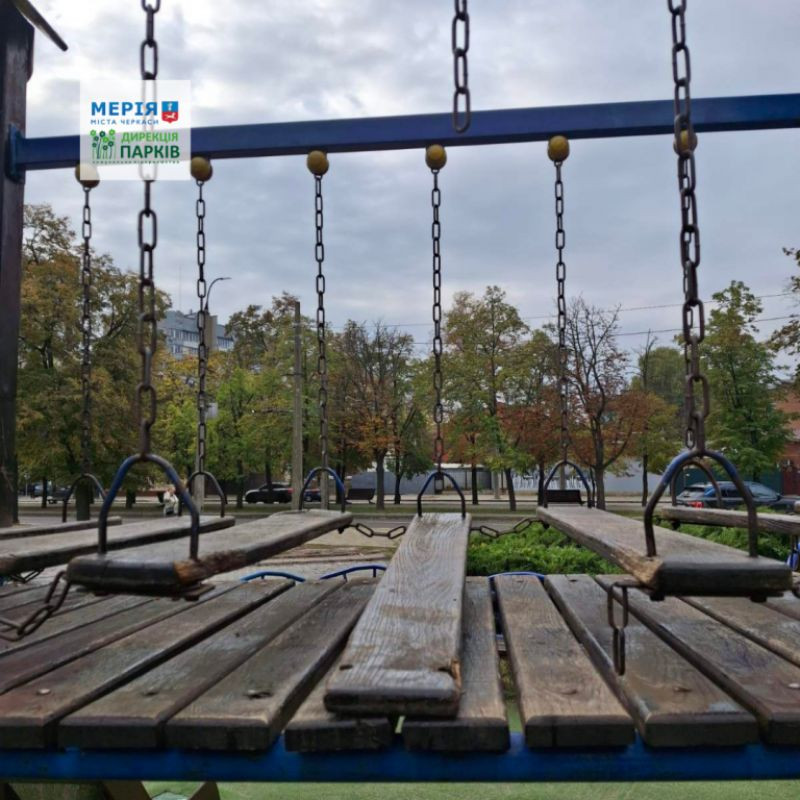 На вихідних у сквері «Живчик», що в Черкасах, невідомими особами було зламано підвісну доріжку на дитячому майданчику та викрадено підвісний елемент.