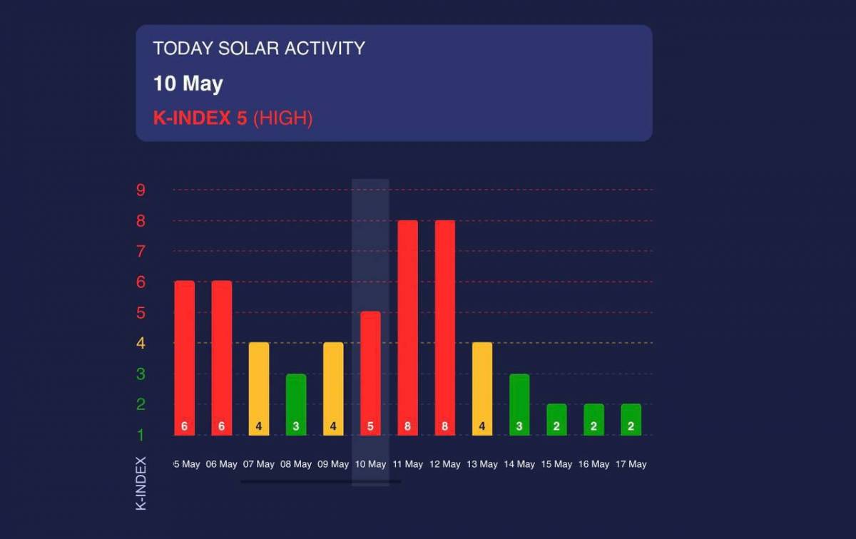 Завтра K-індекс стрибне аж до 8 балів (!), чого не спостерігалося вже дуже тривалий час. Намагайтеся в цей час не переїдати, менше паліть і менше пийте алкоголь, не перебувайте довго на вулиці і не приймайте безконтрольно ліки.